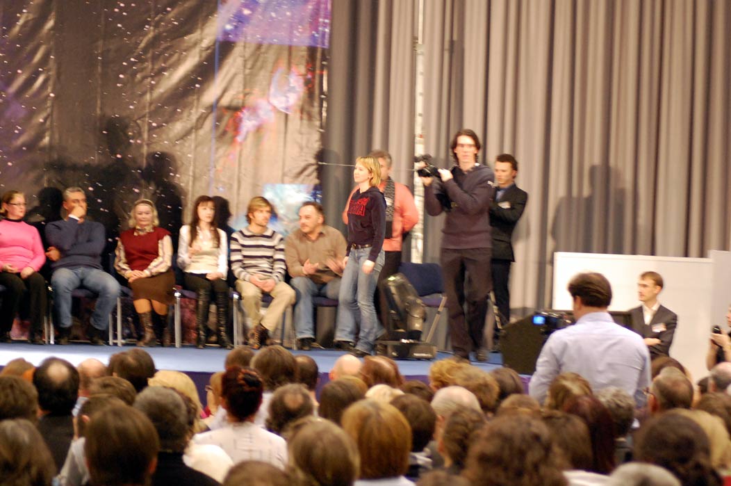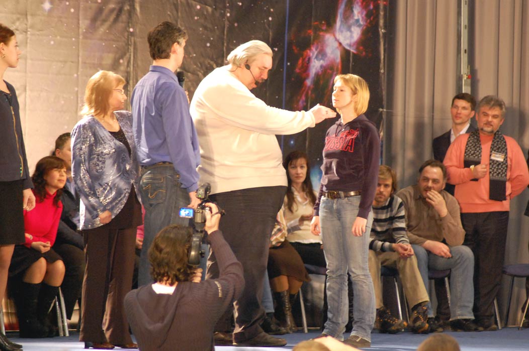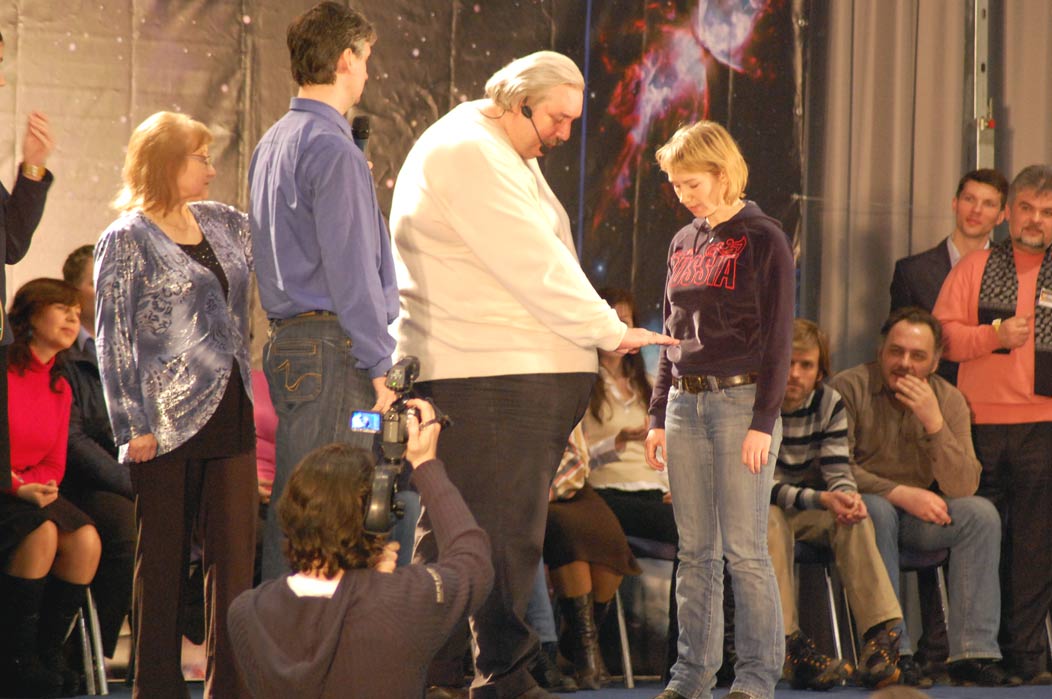 в зале, могли бы оценивать происходящее по хорошо видимой реакции «счастливчиков». Он пригласил выйти вперёд